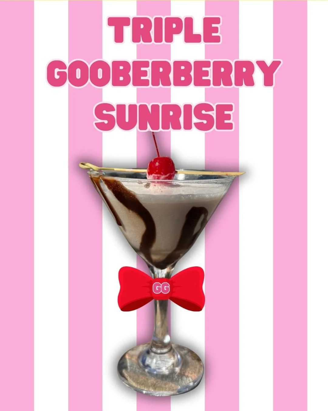 Whipped vodka and crème de cacao blended with milk and chocolate, topped with whipped cream, sprinkles, and a cherry for a sweet, over-the-top Gooberberry treat.