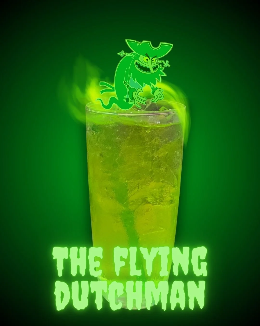 A hauntingly refreshing mix of Tito’s Vodka, melon liqueur, lime juice, Sprite, and a splash of sour—bright, bubbly, and straight from the Flying Dutchman’s locker.